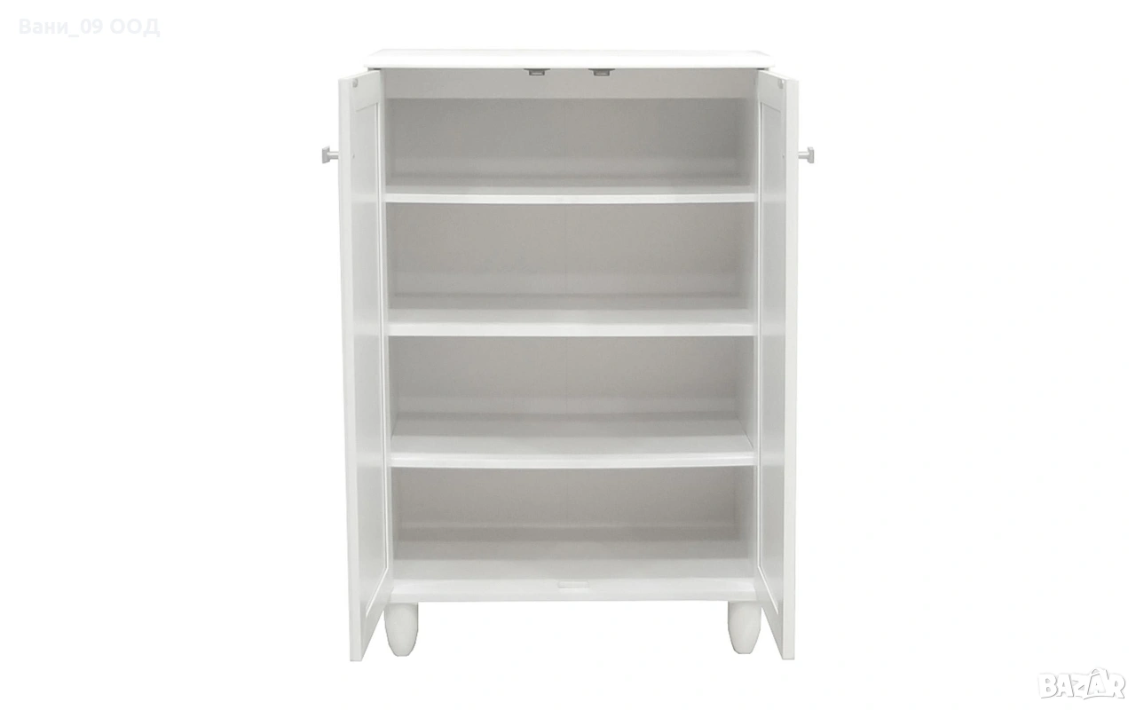 Този красив бял шкаф за обувки е идеалното решение за съхранение на Вашите обувки и аксесоари. Изработен от качествени материали, той ще добави стил и функционалност към всеки интериор. Шкафът разполага с две врати, осигурявайки удобен достъп и организация на Вашите обувки.