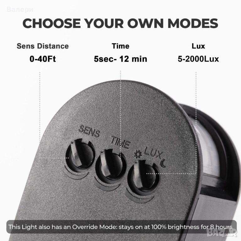 Интелигентен PIR датчик – автоматично включване при движение, което пести енергия и увеличава сигурността.