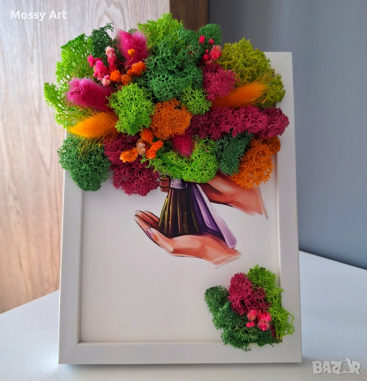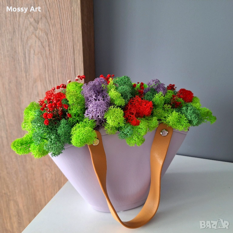 Изработвам творения със скандинавски мъх, подходящи са за всеки един повод - рожден ден, имен ден, нов дом, офис или нов член от семейството и други поводи. Мъхът не изисква никаква поддръжка, за разлика от букета цветя, които увяхват на 3тия ден и ги изхвърляме, сксндинавският мъх НЕ се нуждае от пръскане, поливане. Необходимо е единствено влагата във въздуха,която той поема, за да го поддържа в свеж и мек вид. Започват от 15€