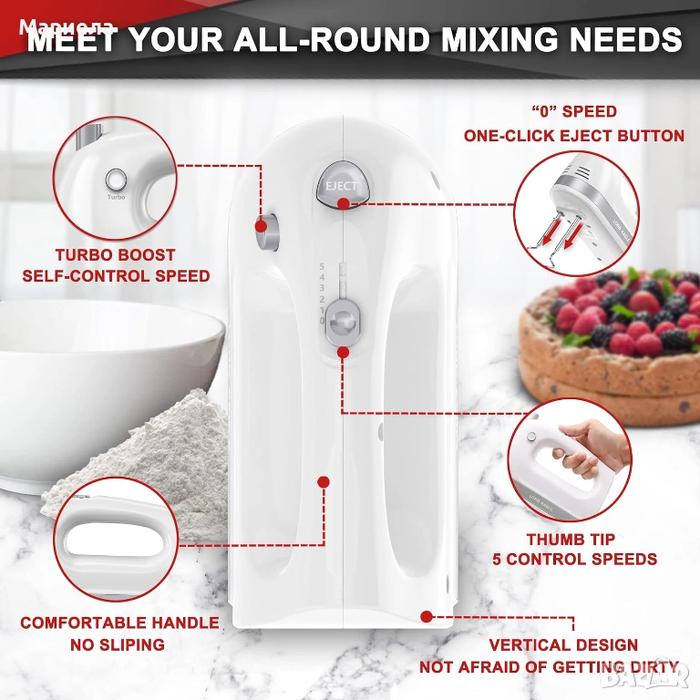 Ръчен миксер 400W, 5 скорости, 5 аксесоара