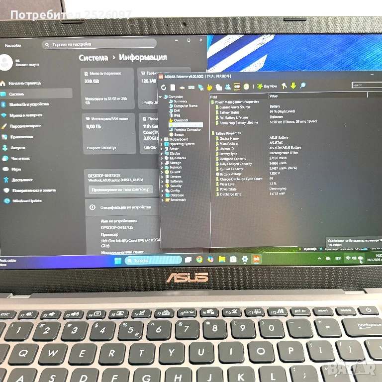 Лаптоп ASUS X415/14” IPS/i3-1115G4/8GB/256GB/Подсветка → Обява 53199210