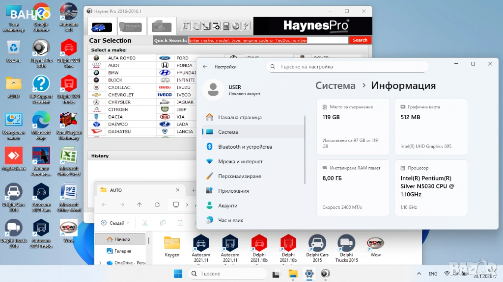 Инсталирани са няколко програми за автодиагностика на БЪЛГАРСКИ език.