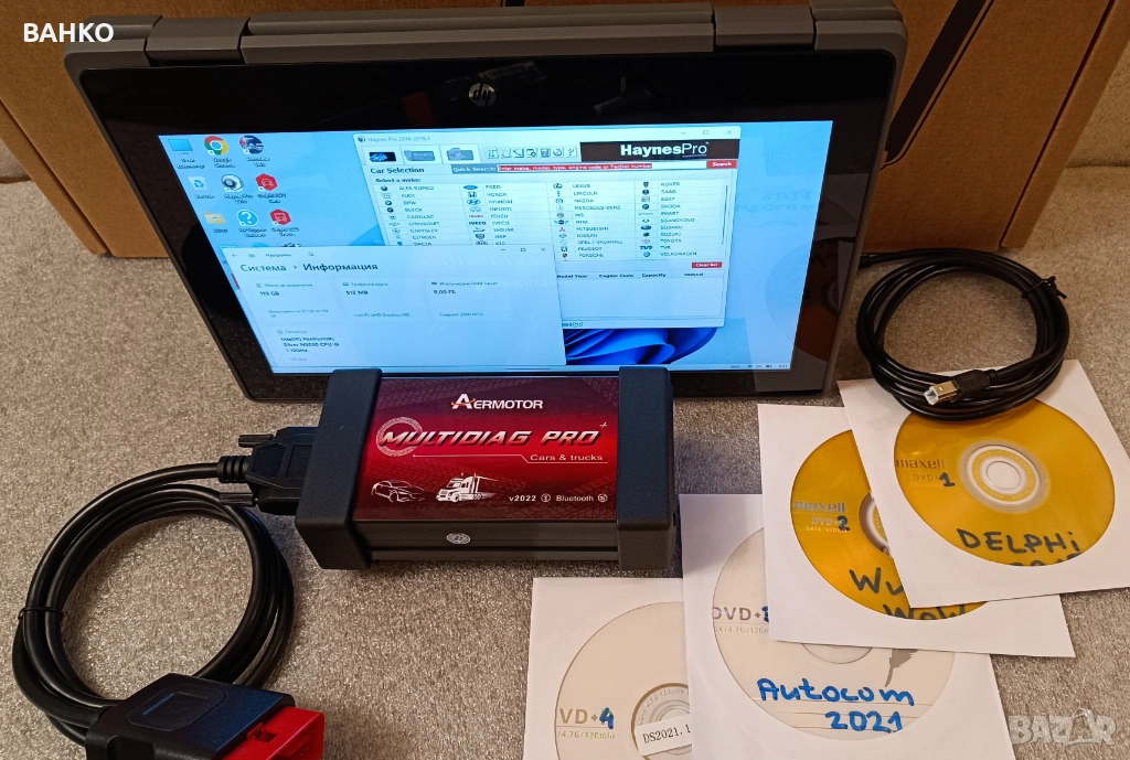 Включва нова универсална автодиагностика и ревизиран лаптоп с инсталирани програми на български език.