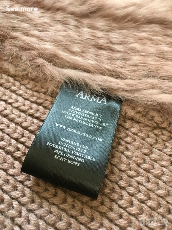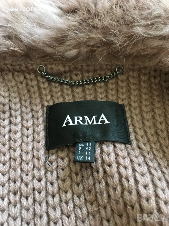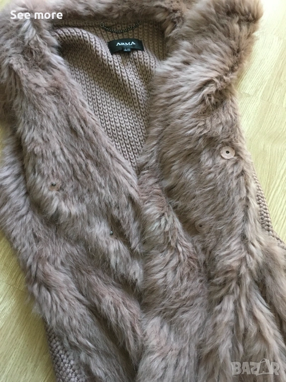 Елек от марката ARMA с натурален косъм на заек в размер IT44.Перфектно състояние! Гръб състав вълна!Дължина 66 см,ГО 53 см!Изпращам по Еконт и Спиди!