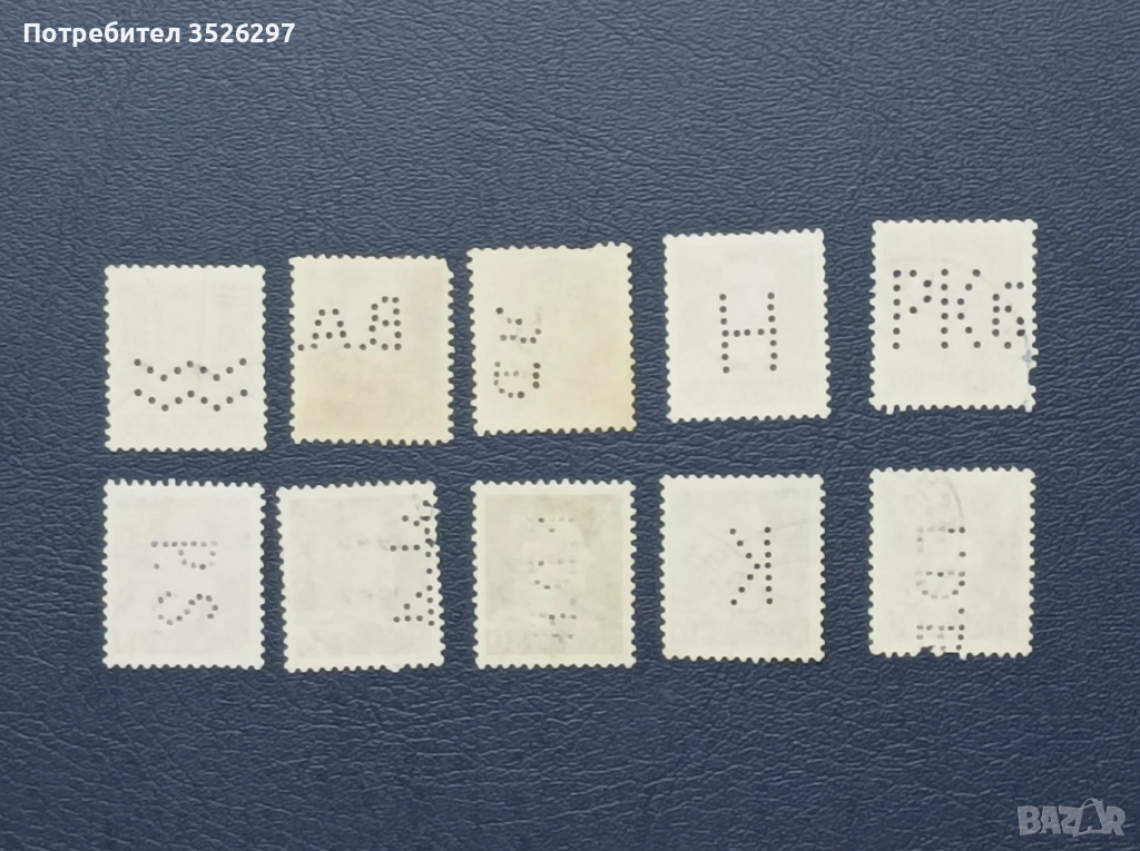 Пощенски марки 10 бр. - перфини от Дания с лика на Крал Фредерик IX. Всички марки са с различна перфорация. Марките са с печат и са тези от снимките за 6 евро.