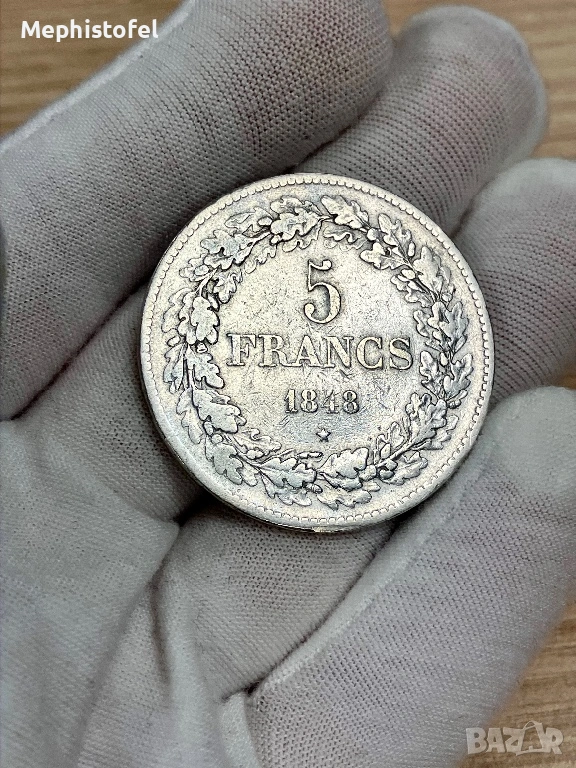5 франка 1848 г, Кралство Белгия - сребърна монета