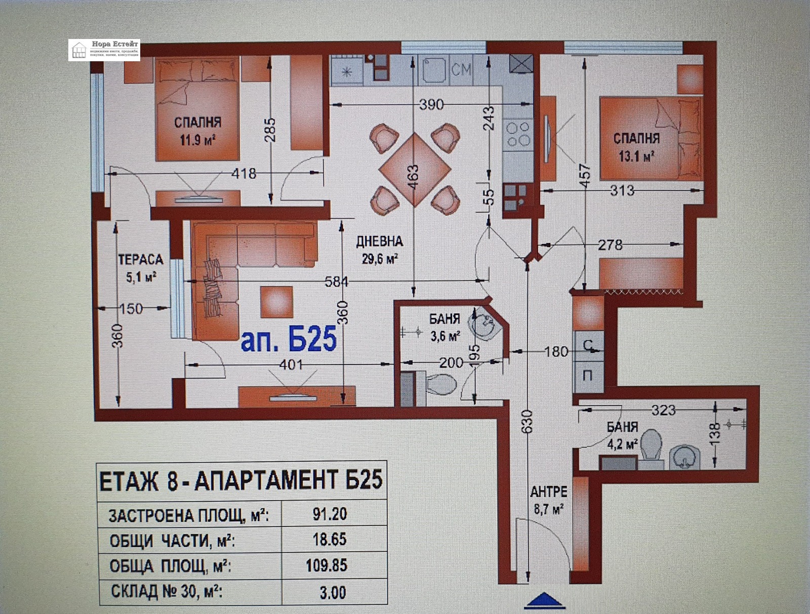 Продавам компактен тристаен апартамент, находящ се на ул. Академик Константин Пашев 44. Без комисион! Цената е на строителя с ДДС.Сградата е с акт 16 от декември 2024 година, населена. Предлагаме освен този и още няколко тристайни и двустайни апартамента.Разположена е в близост до две метростанции - Мизия и Овча купел 2, както и до НБУ.Сградата е с два входа, разделена на две секции, в които са разположени двустайни, тристайни и четиристайни апартаменти с функционално разпределение и с разнообразни квадратури. Проектиран е и магазин, разполагащ със сервизни и складови помещения. В рамките на парцела са осигурени и надземни и подземни паркоместа и гаражи.Отоплението е на газ.Изводи за климатици и за газово котле.Окабеляване за ТВ, интернет и СОТ,видеодомофонна уредба, поставени радиатори, входна блиндирана врата. Конкретната обява е за ап.Б25.Състои се от входно антре с ниша за пералня и сушилня, дневна с кухненски бокс, две спални, баня с тоалетна, втора тоалетна и балкои. В цената на апартамента е включен и склад в сутерена на сградата. В сградата има общи помещение със самостоятелен санитарен възел, подходящо за събирания и тържества на съкооператорите.Монолитна стоманобетонна конструкция, съобразена с нормативните изисквания за сеизмични райони.Зидариите са с керамични тухли Wienerberger.Външната изолация е Церазит с плътност 18-20 kg/m3 и хидроустойчива полимерна силикат-силиконова мазилка.Плоскък покрив, без скосявания в помещенията.Топлоизолация от екструдиран пено-полистирол и два пласта рулонна битумна хидроизолация. Покривът е с топлоизолация от каменна вата и покритие от битумна хидроизолация и битумни керемиди.Дограмата е с двойно отваряне от немски петкамерен РVС профил 76 мм, с троен стъклопакет 40 мм, като комбинацията на различните видове стъкла нискоемисийно стъкло, бяло флоатно и високоенергийно) ще е съобразена с изложението на отделните помещения.По пода на всички стаи и коридори в жилището се полага звукоизолация срещу ударен шум.Стените и таваните са на машинна шпакловка,а подът е с изравнителна армирана цименто-пясъчна замазка.Апартаментът е окабелен за интернет,телевизия и СОТ.За удобство на живущите са предвидени и 2 асансьора,които ще спират на всички нива.Общите части са луксозно изпълнение с ограничен достъп. Нора Естейт предлага за всички нуждаещи се от банково финансиране безплатна консултация с водещ в бранша кредитен консултант, който ще осигури най-добрите условия за Вас.За това предложение купувачът не дължи комисион!