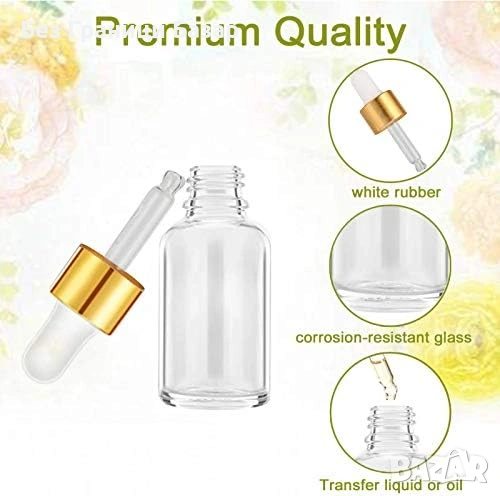 Нови Мини стъклени бутилки 5ml с пипета за етерични масла 10 броя капкомер