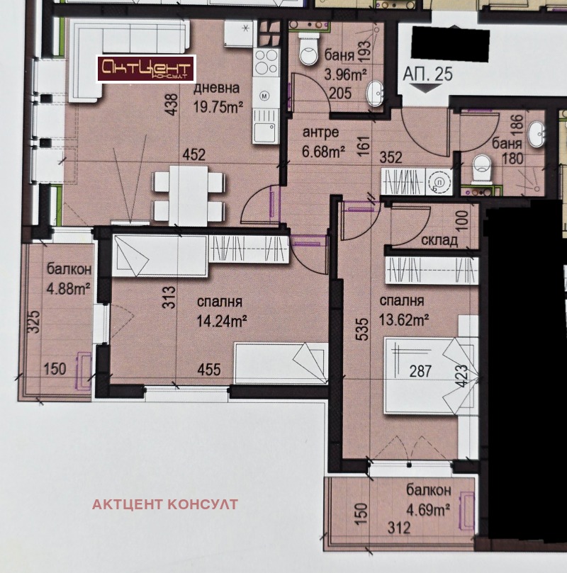 Предлагаме за продажба Апартамент 25, в сграда предлагаме и други тристайни предложения.