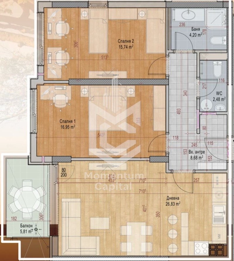 Представяме Ви тристаен апартамент на СРЕДЕН ЕТАЖ с впечатляваща гледка към Витоша и площ от 116 м², разположен в нов супер луксозен жилищен комплекс в кв.Карпузица. Имотът включва самостоятелно мазе и опция за закупуване на гараж, които осигуряват комфорт и сигурност за Вашето ежедневие.