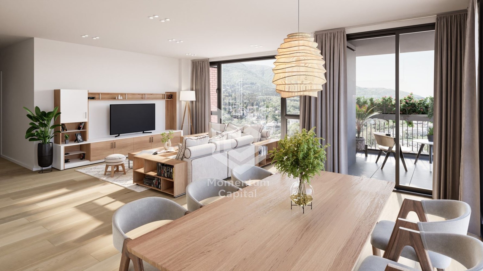 Апартаментът е с югозападно изложение, което гарантира максимална светлина през целия ден и уникална панорамна гледка към Витоша усещане за простор и спокойствие. Състои се от входно антре, дневна, семейна спалня, детска спалня, баня с тоалетна и тоалетна.