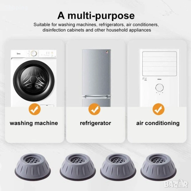 4 бр. Антивибрационни подложки, гумени крачена за пералня. Предотвратяват шум, хлъзгане и омекотяват, снимка 1 - Други - 53200615 4 бр. Антивибрационни подложки, гумени крачена за пералня. Предотвратяват шум, хлъзгане и омекотяват, снимка 2 - Други - 53200615 4 бр. Антивибрационни подложки, гумени крачена за пералня. Предотвратяват шум, хлъзгане и омекотяват, снимка 3 - Други - 53200615 4 бр. Антивибрационни подложки, гумени крачена за пералня. Предотвратяват шум, хлъзгане и омекотяват, снимка 4 - Други - 53200615 1/4