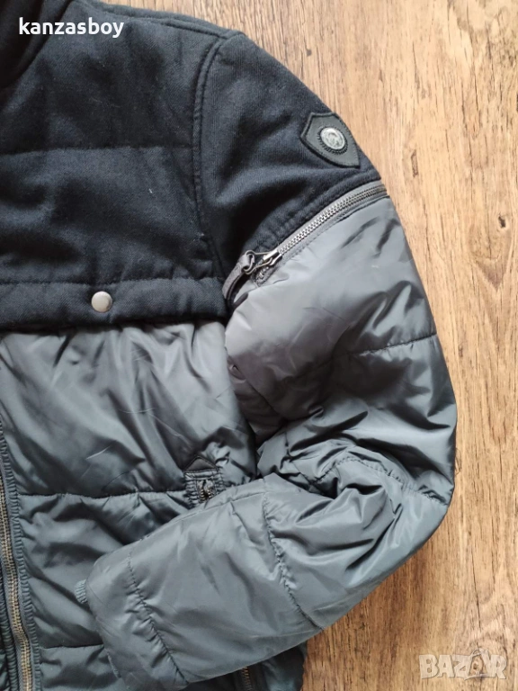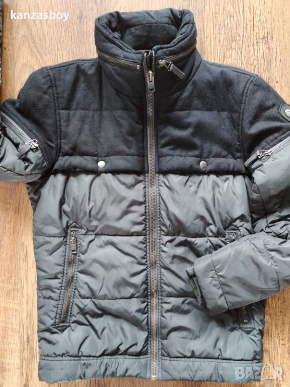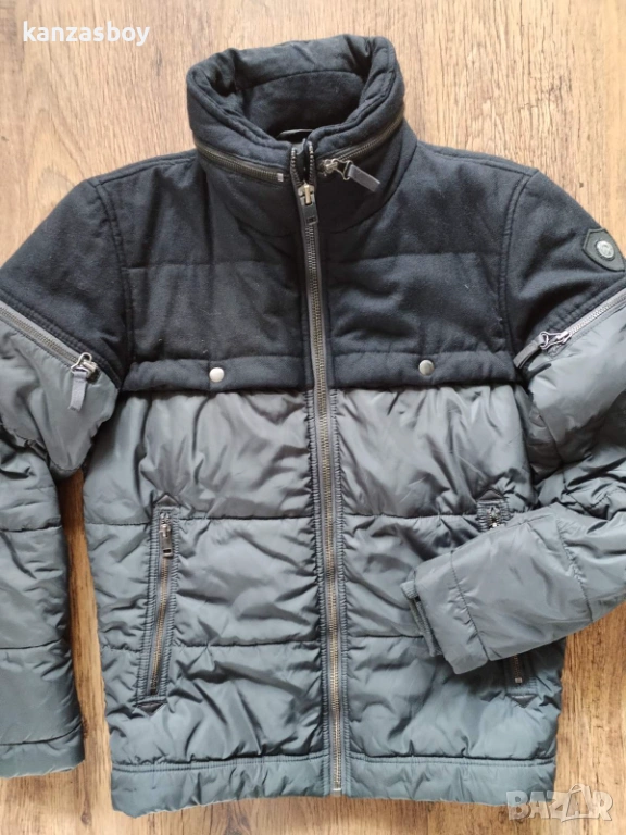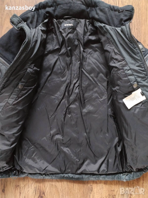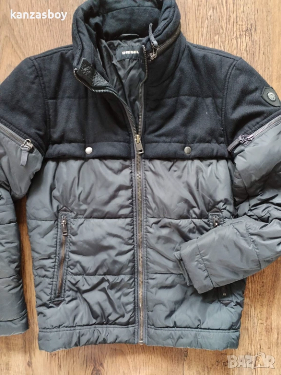 DIESEL - мъжко яке р-р S, 100% оригинал, цялостното състояние на якето е много добро, но има две забележки на единия ръкав (прокъсано) показано на снимките и съобразено с цената