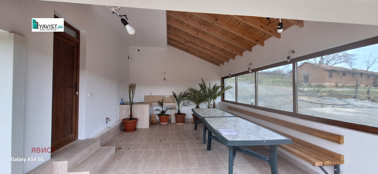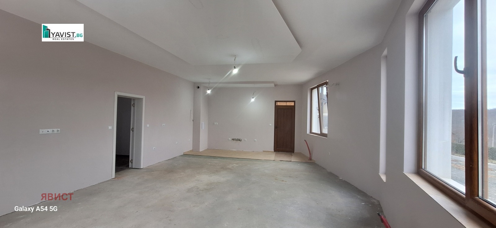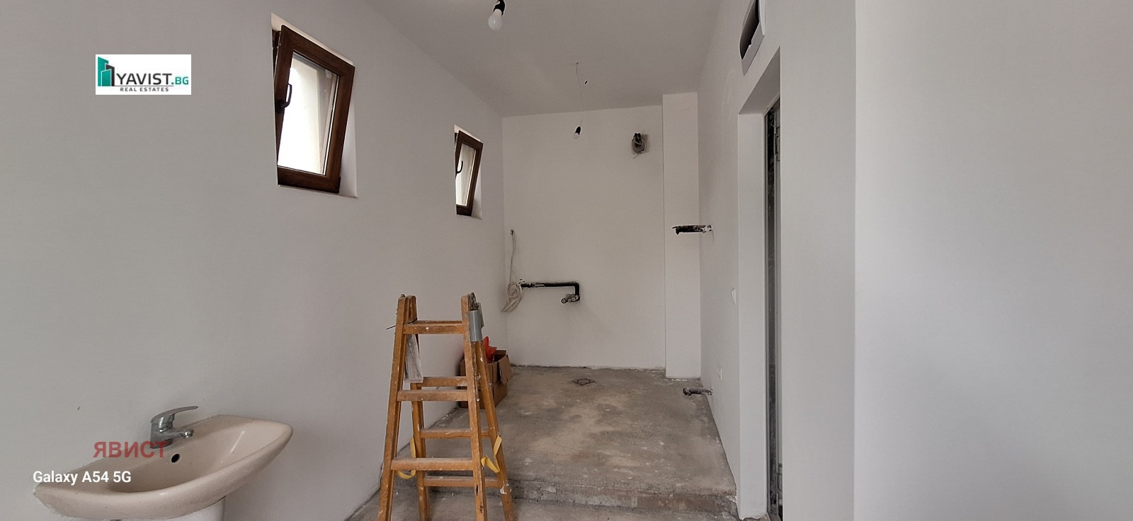 Степента на завършване е до ключ. Всички санитарни възли са с гранитогрес, стени и тавани - шпакловани и боядисани, стълнище гранитогрес, без подови настилки. Лятна кухня завършена, котелно - предвидено за бойлер-200л, за котел и склад за дърва. Предвидени трасета за парно, слънчеви батерии и климатици.