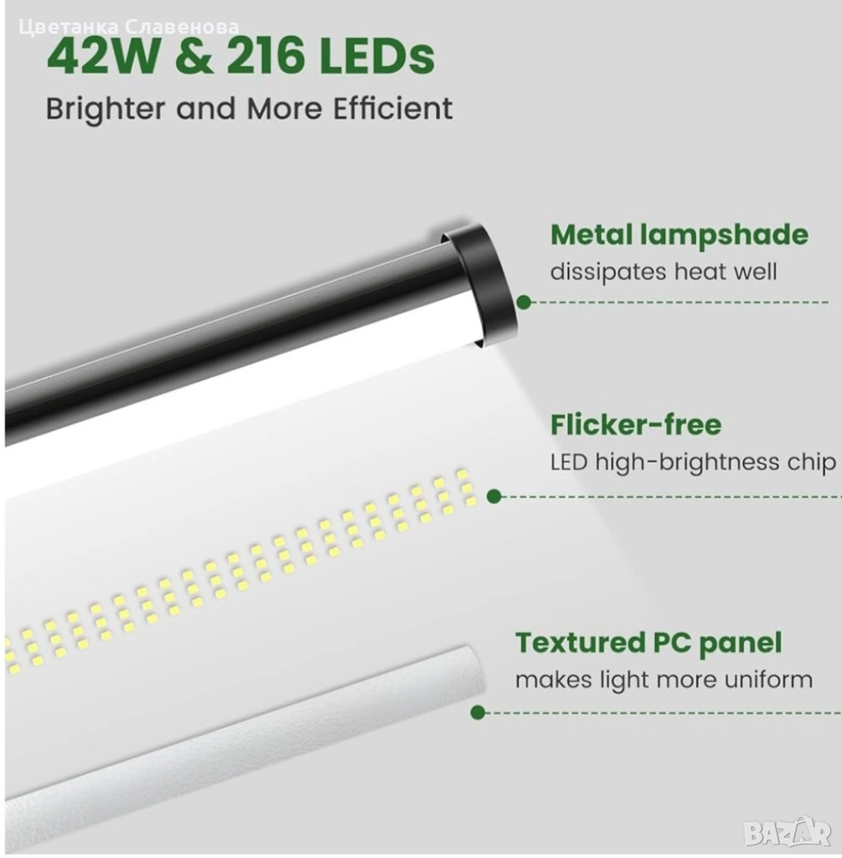 216 лампови мъниста, които осигуряват пълен светлинен спектър за насърчаване на здравословния растеж на стайни растения, включително зеленчуци и цветя.