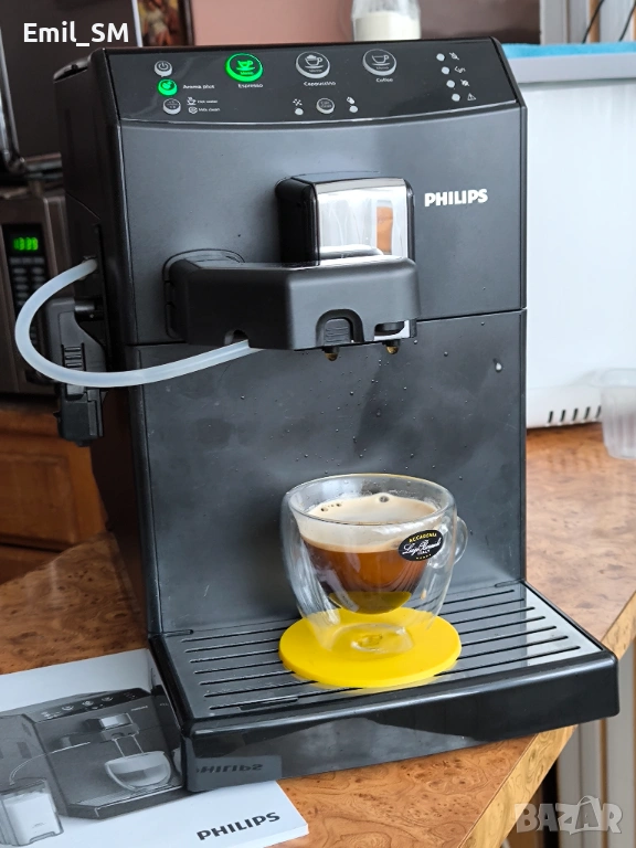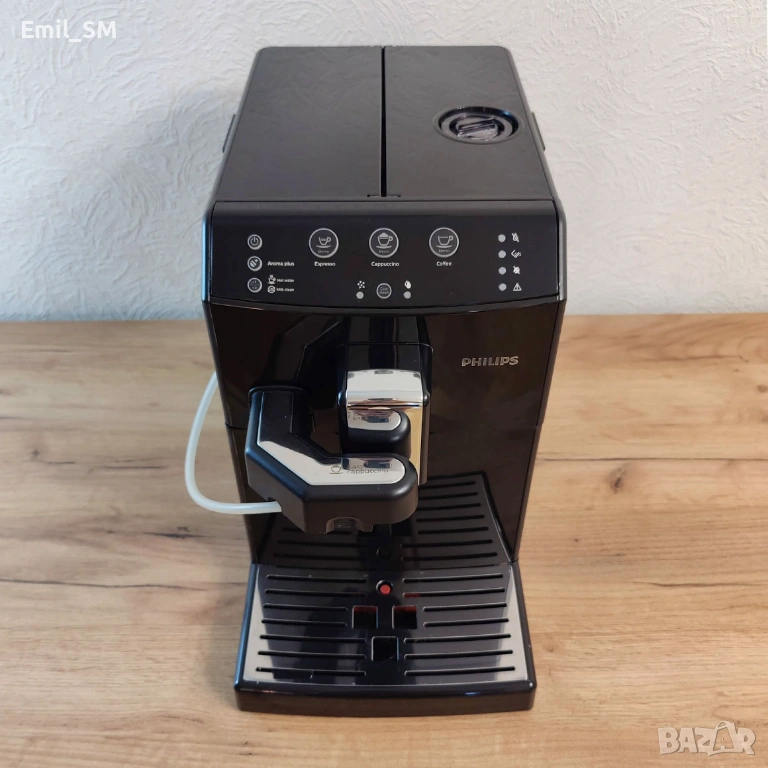 Продавам кафеавтомат Philips HD8829 е модел кафемашина с ценови сегмент в златна среда и работи само с кафе на зърна. Размерът и е малък и компактен, цвят - лъскаво черно с възможност да прави до 30 кафета дневно. Уредът е снабден с вграден механизъм за топла вода и млечната пяна, което го прави удобен за приготвяне на различни напитки: