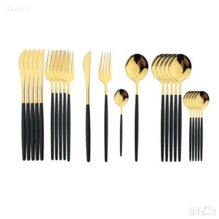 Комплект прибори за хранене от 24 части с луксозен дизайн и магнитна кутия в златисто и черно → Обява 53201283