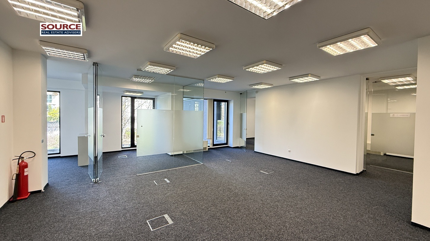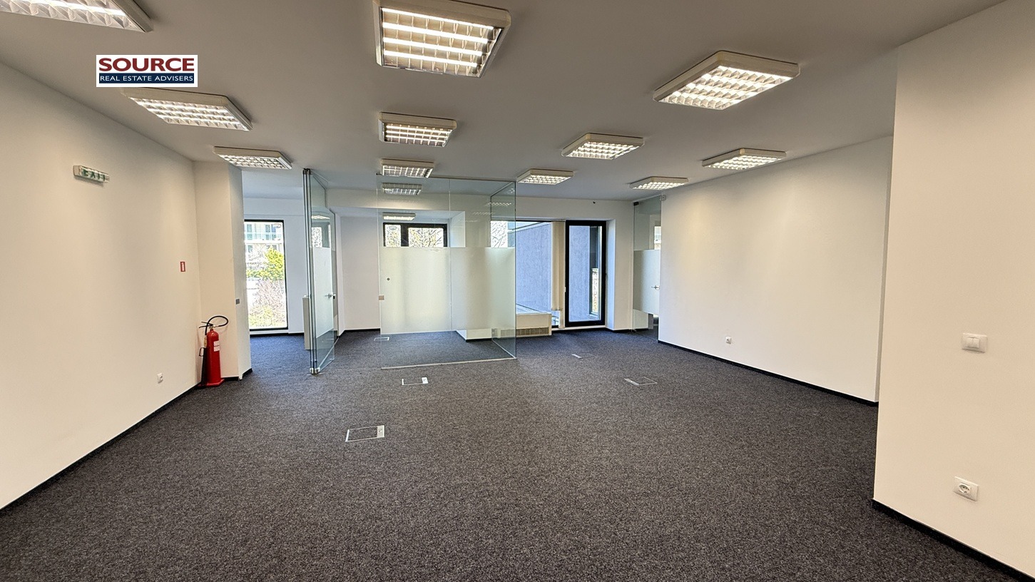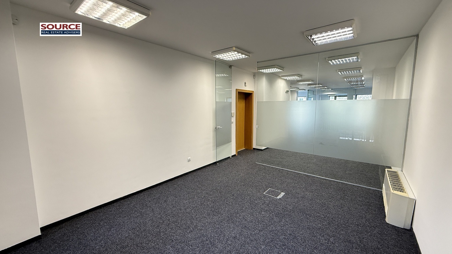 2. Разпределение: 1 голямо Open space помещение, 5 отделни работни помещения преградени със стъклени и гипсокартонени преградни стени, представителна рецепция, оборудванa кухня, wc с баня. Офисът може да бъде допълнително преграден според изискванията на Наемателя.
