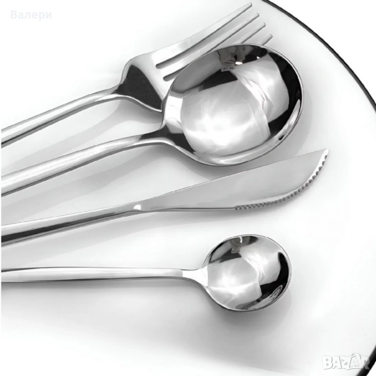 Комплект прибори за хранене в сребрист цвят от 24 части с луксозен дизайн и магнитна кутия → Обява 53201360