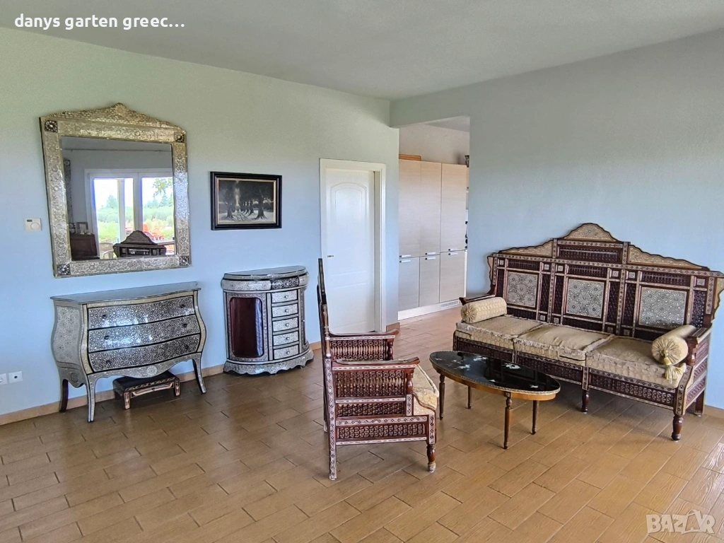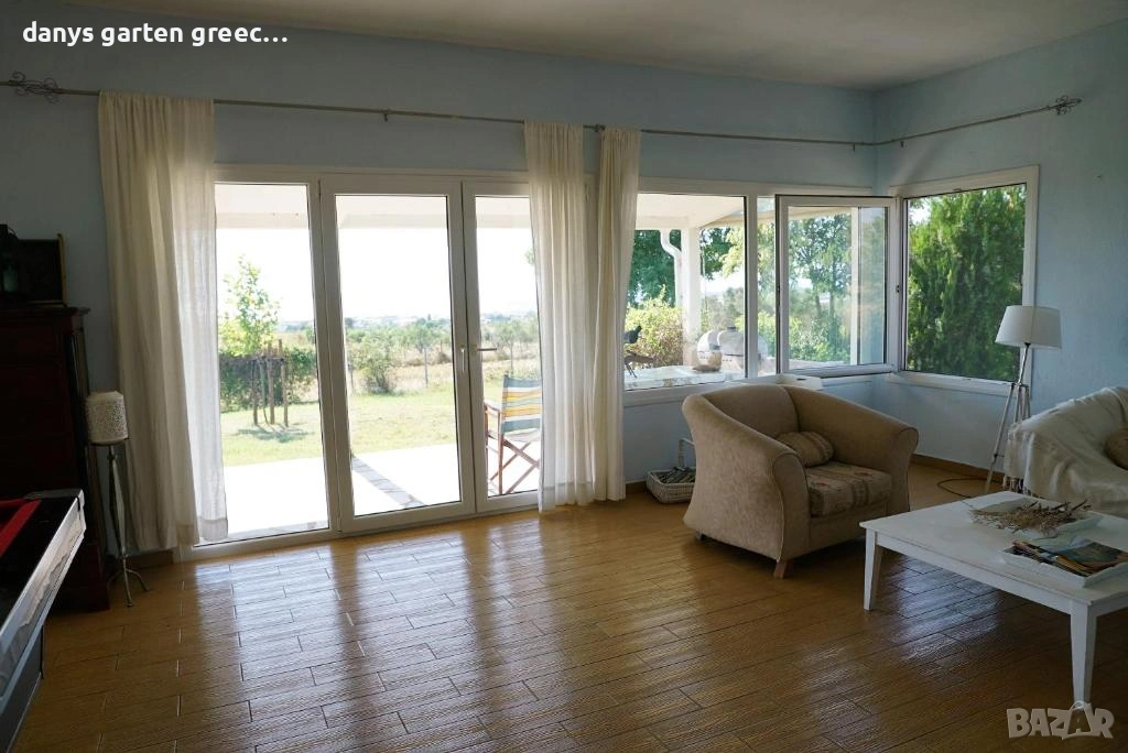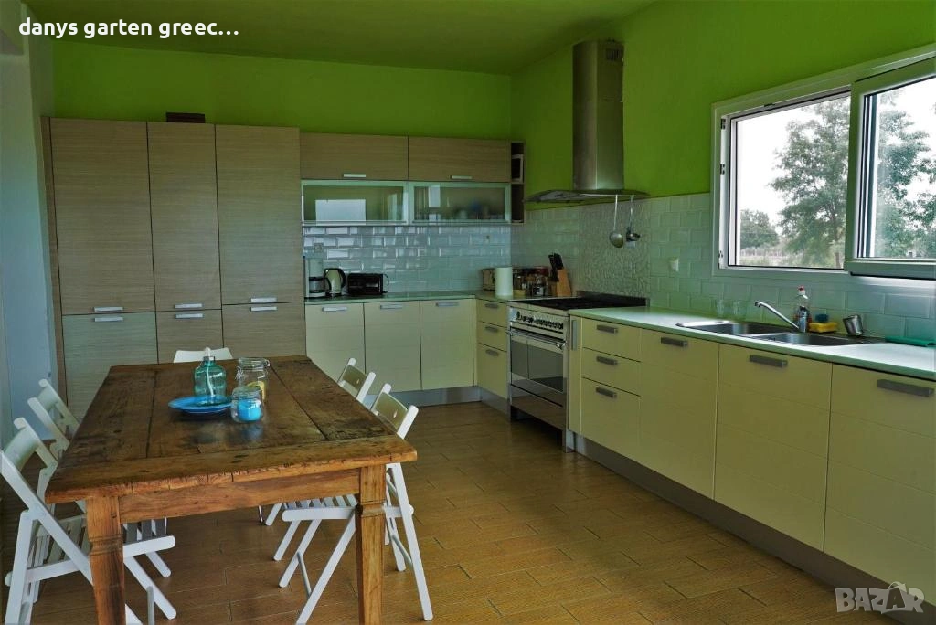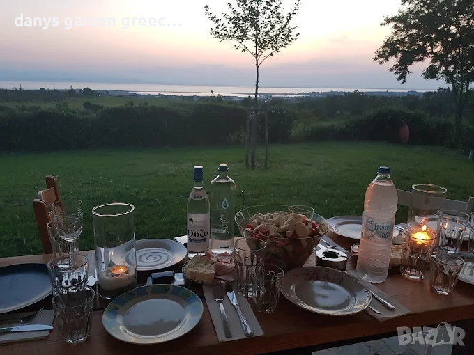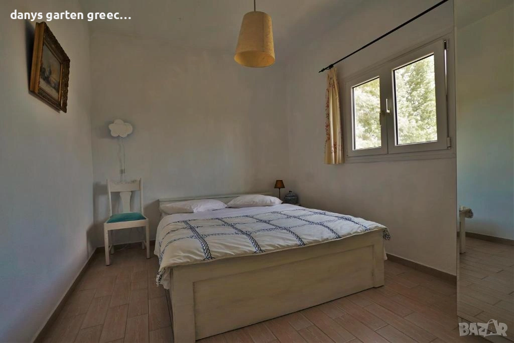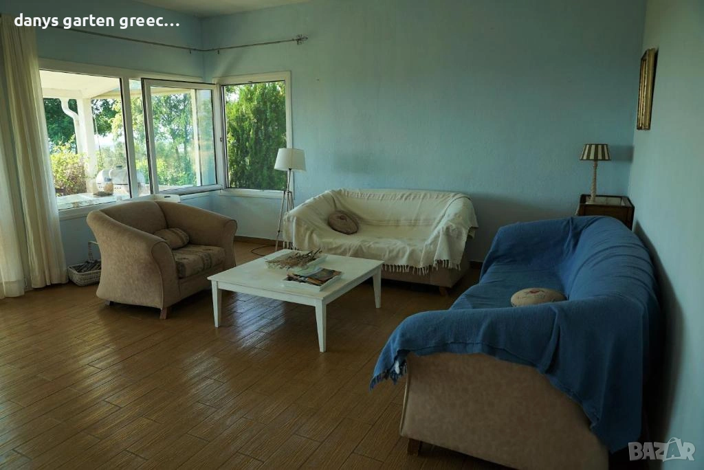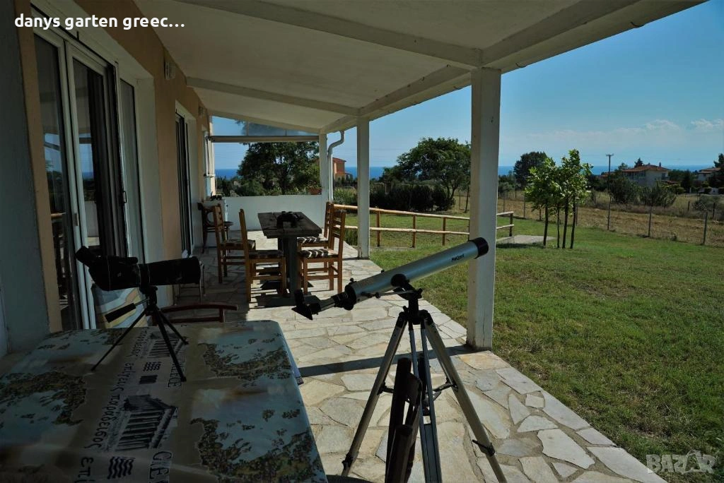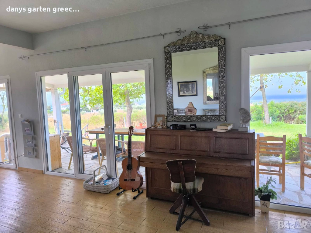 Разположена на едно възвишение с огромна градина, в Неа Миханйона, къщата предлага приказна и невероятно красива гледка към морето и солунския залив. Предлага четири самостоятелни спални, две бани, просторна и напълно обзаведена и оборудвана кухня и голям, стилен хол с гледка към морето, за седем гости. Пред самата къща, може да се насладите от терасата на приказната гледка по морето и залеза. До пясъчните плажове се стига с автомобил за броени минути, също така и до таверните във близост. Къщата е на точно 350 км. от София и разполага с паркомясто за вашия автомобил както и интернет-връзка (WiFi). Домашният ви любимец е /след предварителна уговорка/ добре дошъл. АМА 00000297770 https://maps.app.goo.gl/U3rssYb2DxKCvqnX8