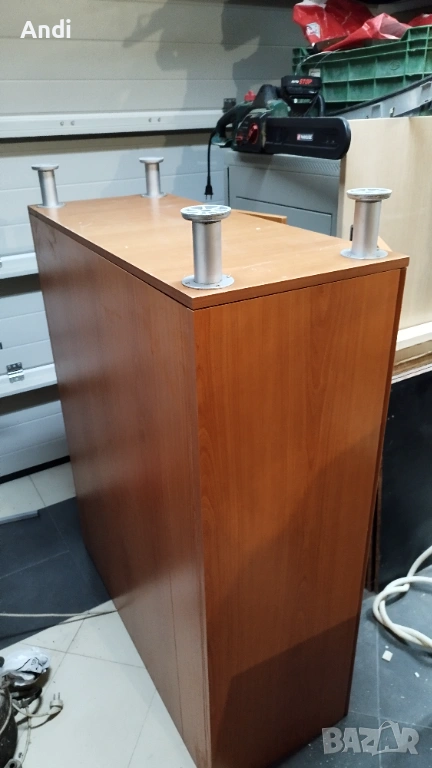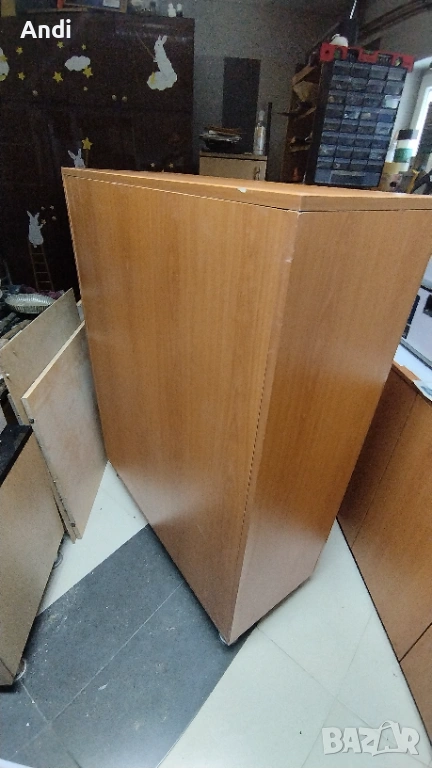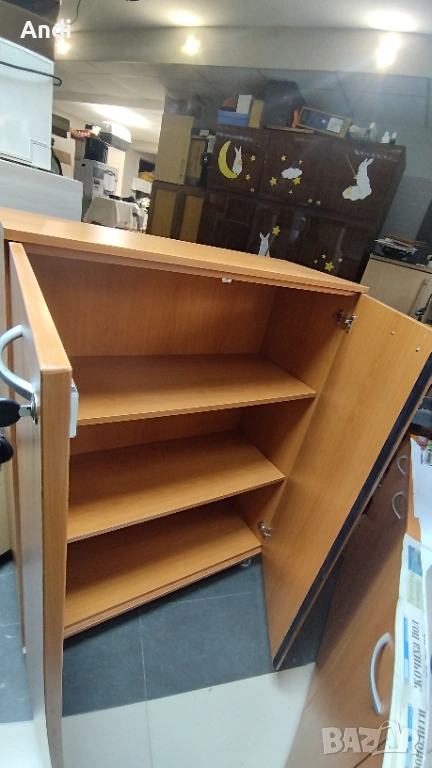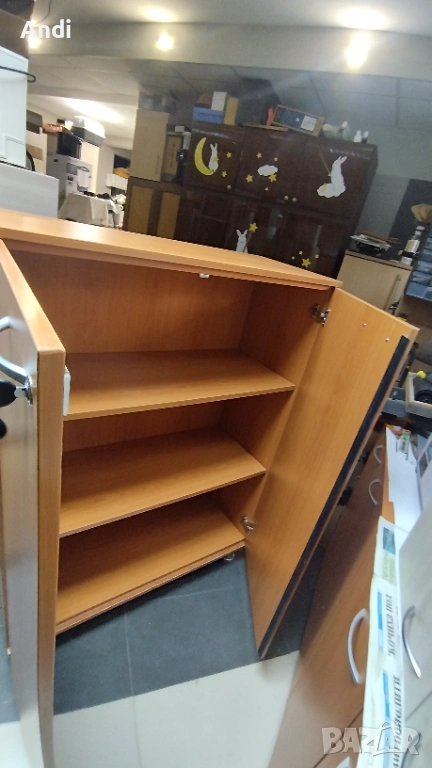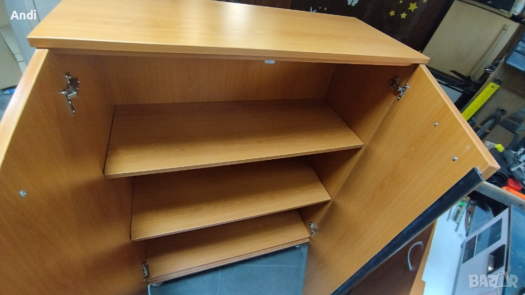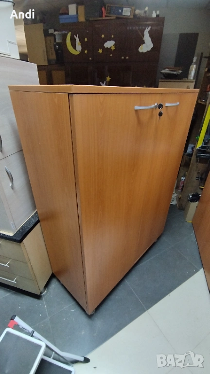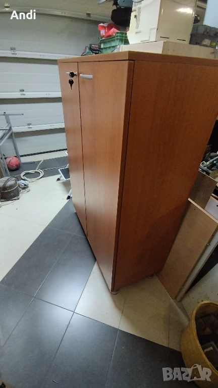 Продавам запазен двукрил гардероб - офис шкаф с рафтове. Шкафа е запазен със заключване. Има 3- рафта като може да си добавите и още при желание. Цвета е череша - червеникаво кафяв. Размерите са ширина - 100см, височина - 135см и дълбочина - 42см. Шкафа е на нивелиращи се крака, плота и рафтовете са от ПДЧ , както и гърба и корпуса са от 1,8см пдч, шкафа е изключително здрав за тежки документи, но може да се използва и за дрехи или като кухненски шкаф.