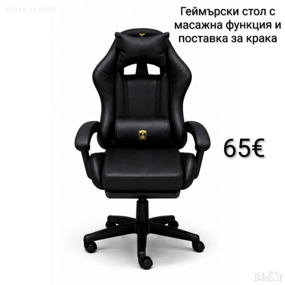 Геймърски стол с масажна функция и поставка за крака