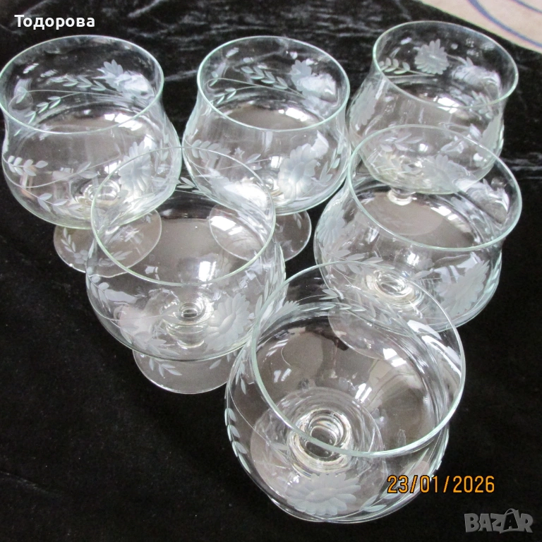 Предлагам кристални гравирани чаши на столче, белославски кристал.