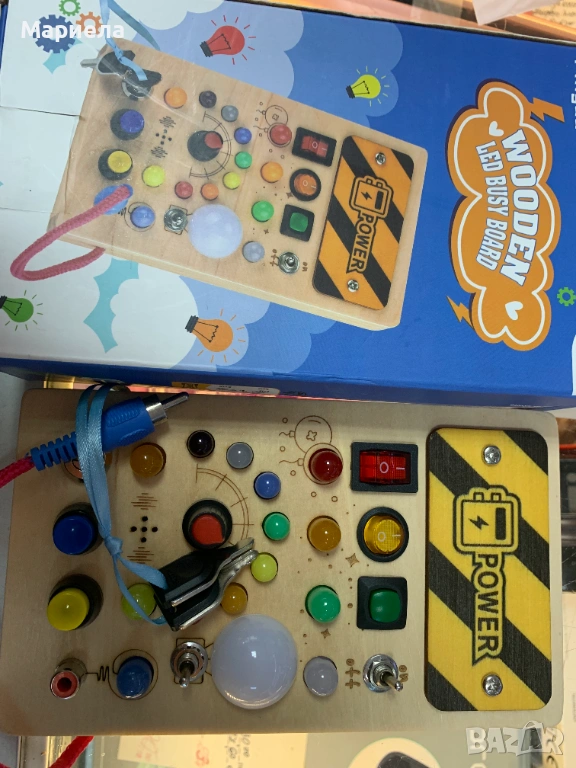 Дървената дъска различни превключватели , които да ангажират детето ви и да му помогнат да развие фината си моторика.