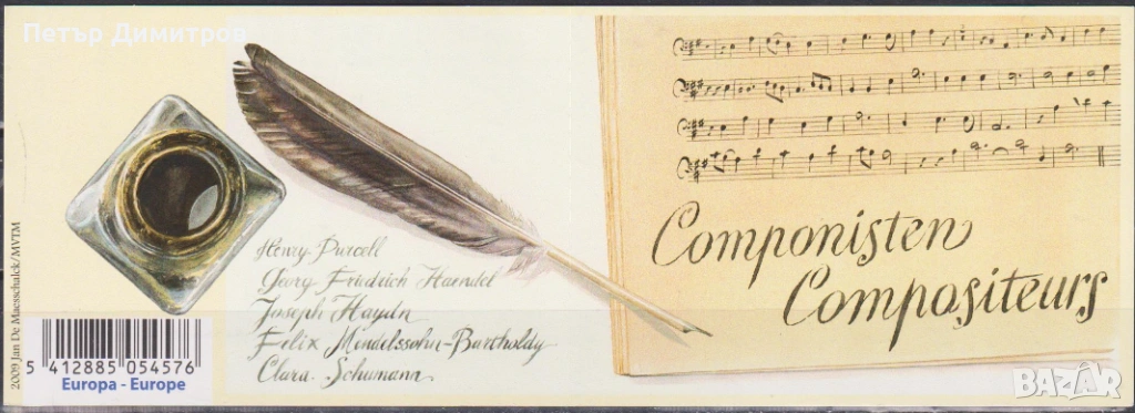 Чисти марки (5) в карнетка Композитори Музика 2009 от България.