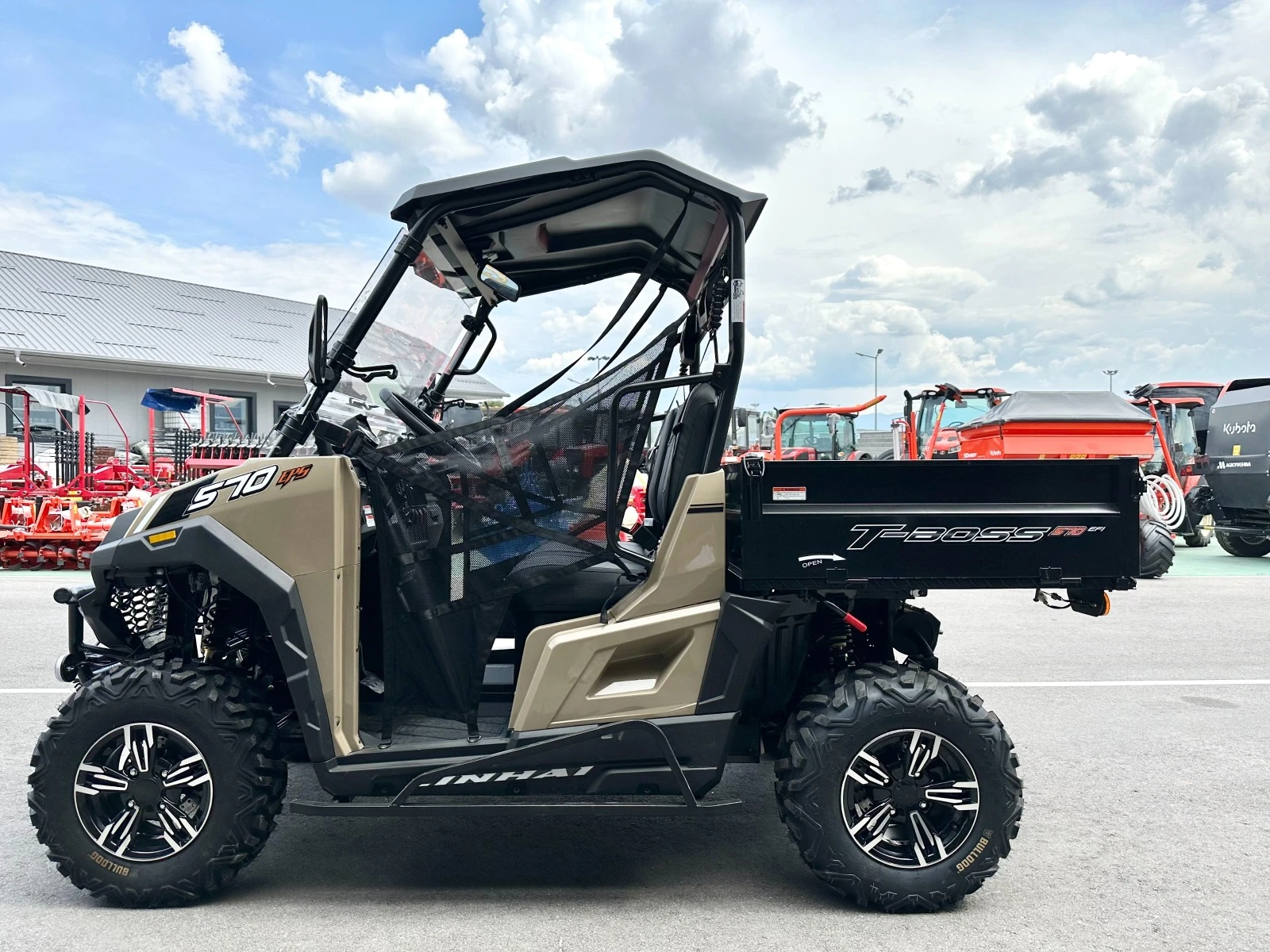 Linhai UTV 570 T-BOSS EPS е известен трудолюбив. Модерният дизайн със спортен акцент и нови алуминиеви джанти впечатлява от пръв поглед. Благодарение на сервоусилвателя на кормилното управление шофирането е приятно и лесно дори при движение с товар. Изцяло новият двигател е по-силен, по-жив и по-икономичен. Новият Linhai 570 T-BOSS EPS е идеален помощник за работа в гората, на строителни обекти, в паркове, градини, спортни площадки, при снабдяване на планински хотели. Предлага се в два цвята! Двигател Новият едноцилиндров инжекционен двигател има увеличена мощност и достатъчно мощност за тежка работа и бързо ускорение. Модерното впръскване на гориво осигурява ниска консумация и ниски емисии. Предаването на мощността се осигурява от надеждна автоматична трансмисия на водещия канадски производител CVTech. Електрически усилвател на волана Бустерът значително повишава комфорта и безопасността при шофиране. Управлението изисква много по-малко усилия, особено при ниски скорости и при завиване на място, а дори дългото шофиране или целодневната работа няма да ви изморят. Сервоусилвателят на волана функционира и като амортисьор. Когато предното колело се удари в скрит камък, дупка или пън, ударът не избива волана от ръката ви, по-голямата част от енергията се поглъща от сервоусилвателя на волана. 4х4 задвижване Електрически свързаното задвижване на четирите колела с блокировка гарантира отлична проходимост в трудни терени. Освен това имате на ваше разположение блокаж на диференциала и силна редукция за забавяне за тежка работа, по стръмни наклони и за теглене на тежки товари. Независимо окачване на колелата Широкото шаси и ниският център на тежестта осигуряват отлична стабилност и отлична проходимост. Всички колела са независимо окачени в двойни A-рамена с лесно регулируемо окачване. Много малък радиус на завиване също допринася за високата маневреност. Голямо сгъваемо легло Можете да носите всичко необходимо в просторното тяло. Благодарение на практичната накланяща се предна част и лесното сгъване с помощта на газови амортисьори, сгъването на товара е лесно. Всички контроли под ръка Воланът, скоростният лост и всички елементи за управление са прегледно и ергономично разположени. Всичко е точно там, където интуитивно очаквате, контролите се чувстват напълно естествено в ръката ви. Това улеснява работата, нищо не ви разсейва по време на шофиране и все още имате контрол. Мощни спирачки Силно оразмерените хидравлични спирачки с големи дискове осигуряват убедителна спирачна сила. Освен това спирачките са отлично предсказуеми и ще спрат безопасно машината дори при тежък товар или натоварено ремарке. Многофункционален LCD дисплей Арматурното табло с многофункционален LCD дисплей със синя подсветка се чете отлично и предоставя цялата важна информация: дигитален оборотомер, дигитален скоростомер, индикатор за километража, брой часове на двигателя, индикатор за задвижване 2WD / 4WD, манометър за температурата на охлаждащата течност, манометър за горивото, светлинен индикатор за неутрални, дълги светлини, пътепоказатели, заден ход и светлина на двигателя. Богато оборудване включено в цената Въпреки напълно несравнимата цена, Linhai UTV 570 T-BOSS EPS предлага богато оборудване още в основата. Не му липсва солиден пластмасов покрив, устойчив на ултравиолетови лъчи, п