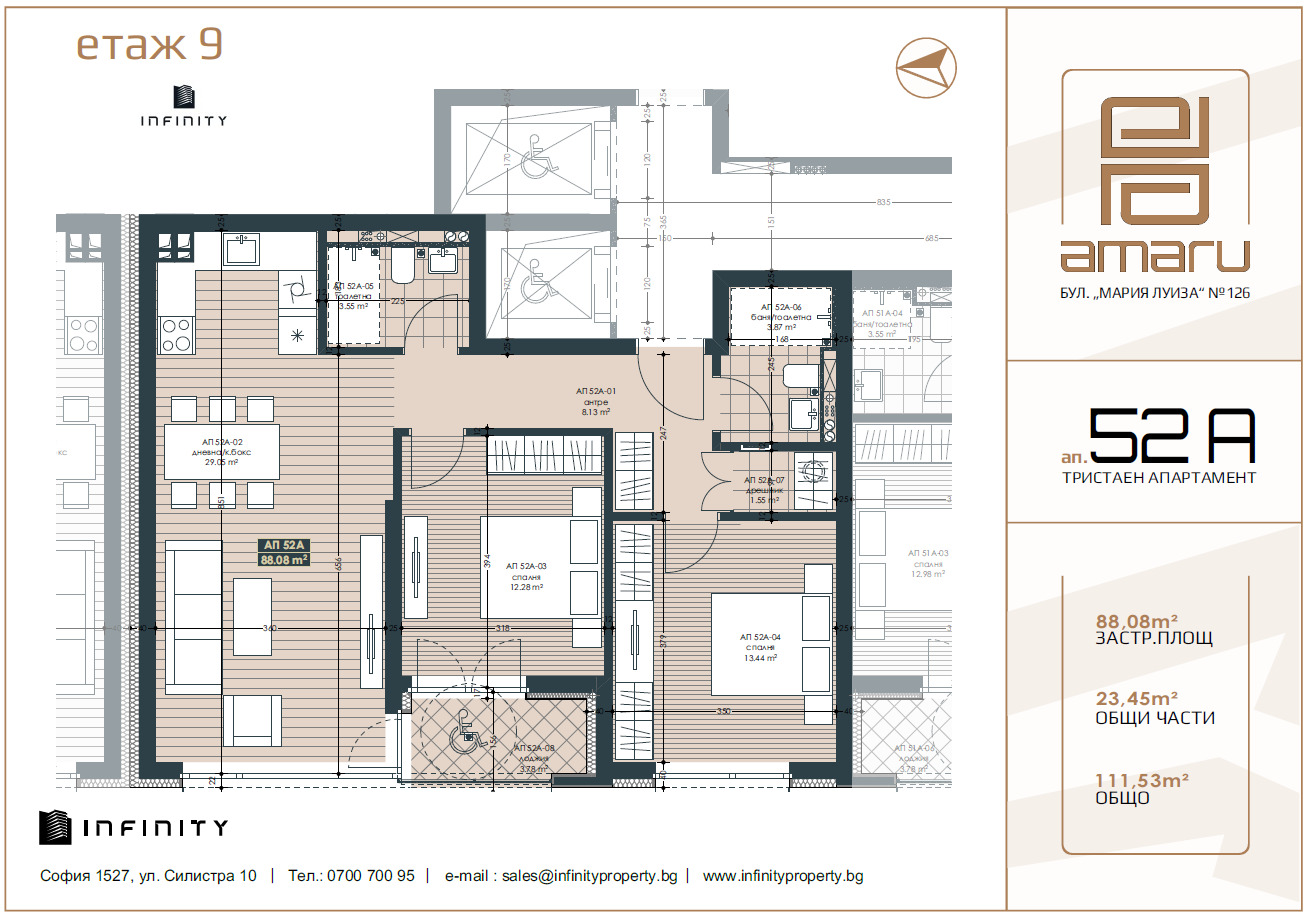 Обща площ: 111,53 кв.м;