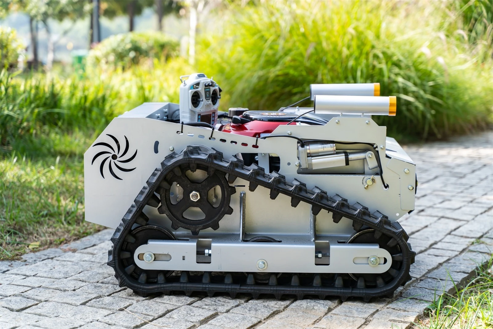 Mини верижна косачка Бунт Агро с дистанционно управление с обхват до 200м ✅ Може да работи в наклон до 30 градуса. Предназначена за косене на трева, отваряне на зона за изолация на пожар; косене на пътища: кастрене на пътни зелени пояси, странични откоси, паркове и други общински зелени площи, тревни площи, снегопочистване на пътя и др. 📞 Само до 15. 02. 2024 на цени от 3 8999лв. без ДДС📞 0879600046 Размери на машината: 930 х 860 х 540 Тегло на машината : 154 кг Сегменти от пистата : 32 селекции с 60мм пресичания Ширина: 120мм Марка двигател: Longxin Структурен модел: хоризонтална решетка с 4 инсулта Сила на калибриране: 3, 5kW Скорост на измерване: 3600 r/min Тип гориво: Бензин Капацитет на резервоара за гориво: 1Л Обхват на дистанционно управление: 150-200м Работен захват 550мм Хибрид
