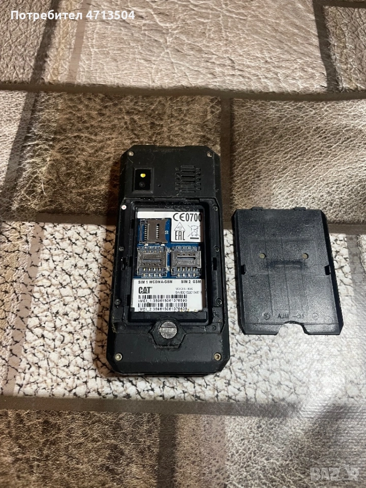 Телефона има следи от употреба и капачето е счупено при болтчето.
