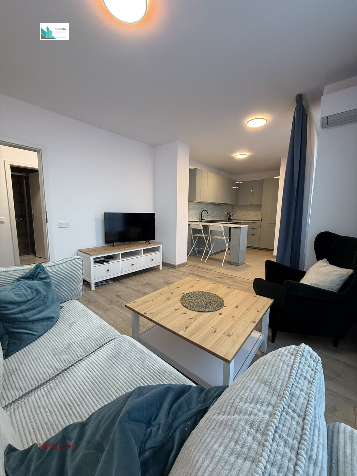 Агенция КИБЕЛА предлага на Вашето внимание изцяло нов двустаен апартамент с подземно паркомясто в кв. Студентски град - Вие сте първите наематели! Имота е разположен на 1-ви жилищен етаж, над партер в нова модерна кооперация с акт 16. Напълно обзаведен, всичко е чисто ново и в гаранция. Състои се от входно антре, светъл хол с кухненски бокс, уютна спалня, баня с тоалетна, отделно мокро помещение и балкон. Подземно паркомясто включено в наемната цена. Обзавеждане и оборудване: хол - комфортен диван, фотьойл,