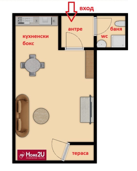 функционално обособена дневна с кухненски бокс