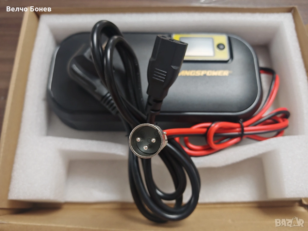 Зарядното е предназначено за зареждане на батерията и не се използва като силов конектор към мотор или контролер.