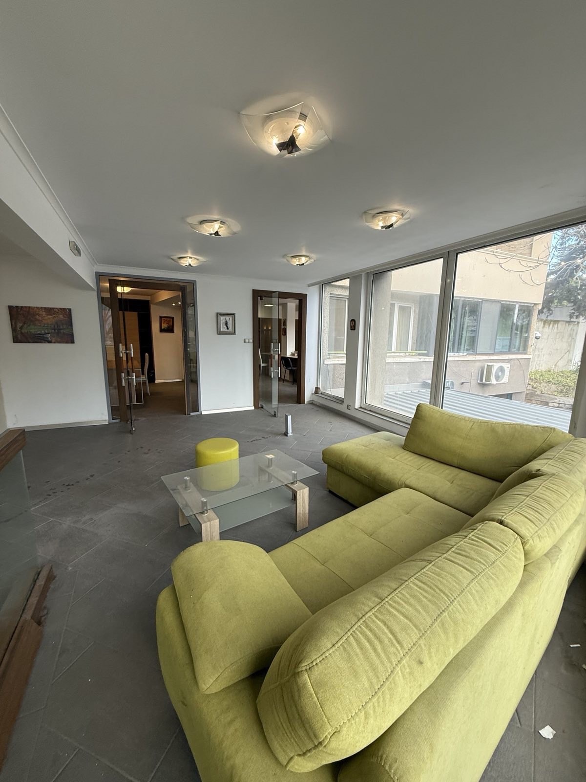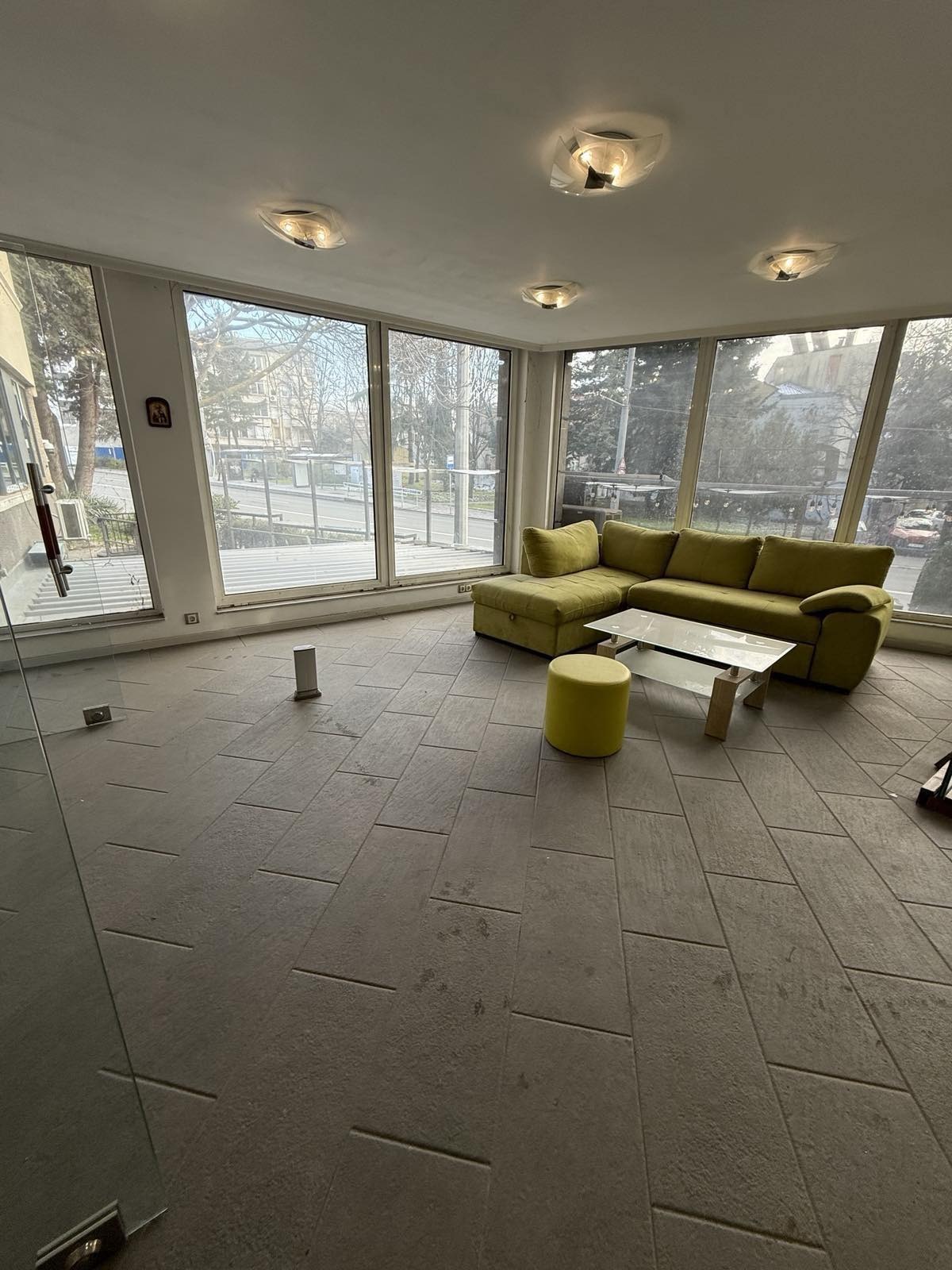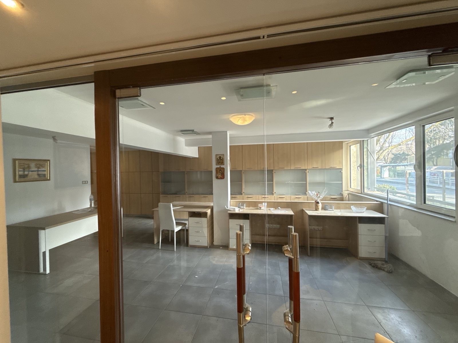 Просторен офис с чиста площ от 150 кв.м. под наем, намиращ се на ул. Булаир. На 1-ви етаж със самостоятелен вход. С възможност за реклама, брандиране на прозорците. Има СОТ система. С два входа. С кухненски бокс. С климатична система. Оборудван с бюра. Състои се от 5 помещения.