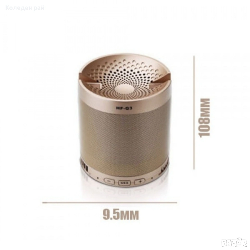 Характеристика: Многофункционална безжичен колона с Bluetooth и стойка за телефон или таблет Съвместима с: iPhone, Ipod, лаптоп, мобилен телефон, MP3, MP5, PC, Tablet PC, TF / Micro SD Card Поддържа: Bluetooth, FM, разговори със свободни ръце, LED светлина, TF / Micro SD Card карта за възпроизвеждане на музиката и за сила на звука Свързване: Wireless Интерфейс: 3.5mm аудио, Micro USB, TF слот за карта, USB 2.0 Аудио източник: Bluetooth съвместими устройства, електронни продукти с USB порт, TF / Micro SD Card Материал: ABS, електронни компоненти Цветове: черен - 35лв. Модел: WS Q3 Bluetooth версия: Bluetooth 2.1 Брой високоговорители: 1 Импеданс на тонколоната: 4 ома Канал на звука: две канален (стерео) Честота: 100Hz-20KHz Сила: 80 db Поддръжка O.S: Linux, Mac OS, Windows 2000, Windows 7, Windows 98, Windows 98SE, Windows ME, Windows Vista, Windows XP Работно напрежение: DC 5V Капацитет на батерията: 1200mAh Време за зареждане: 3 часа Траен Време: до 120 часа Тегло на продукта: 457 гр Размери на продукта: 9.50 х 9.50 х 10.80 см Компектът включва: Стерео Wireless Bluetooth колона; USB кабел за зареждане; Транспортна кутия;