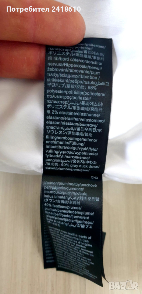 Вътрешен с тик так копче Състав: Гъши пух и Пера