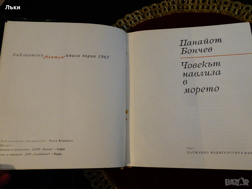 морето.Автор Панайот Бончев.Издадена през 1967 година.Твърди корици с цветна