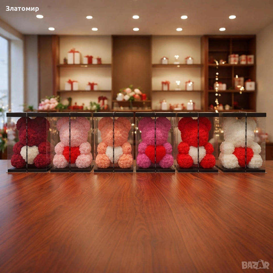 Мече от рози, 25см с подаръчна кутия в 3 цвята