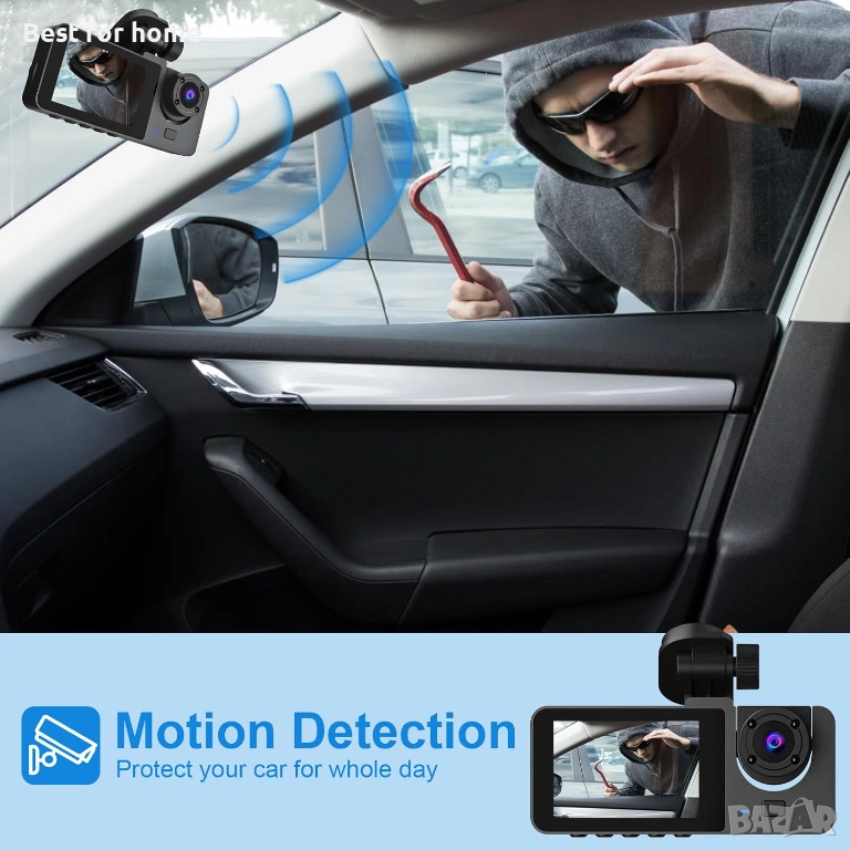 Усъвършенствано нощно виждане и детекция на движение: Оборудвана с инфрачервено нощно виждане ,автомобилната камера** осигурява ясни кадри дори в условия на слаба светлина, осигурявайки денонощно наблюдение. Детекторът на движение** автоматично задейства запис, когато се засече движение около автомобила ви, предлагайки **подобрена сигурност срещу кражба и случайни повреди.