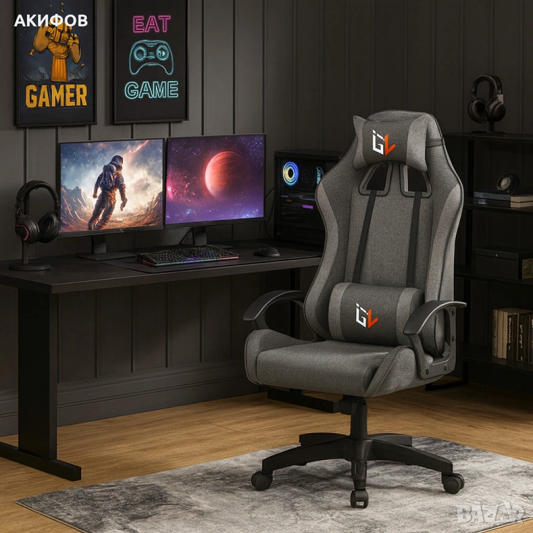 Ергономичен геймърски офис стол с лумбална и шийна опора – комфорт за игра и работа без умора → Обява 53204329