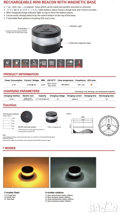 - Малка и компактна безжична LED Лед Аварийна Сигнална Лампа.