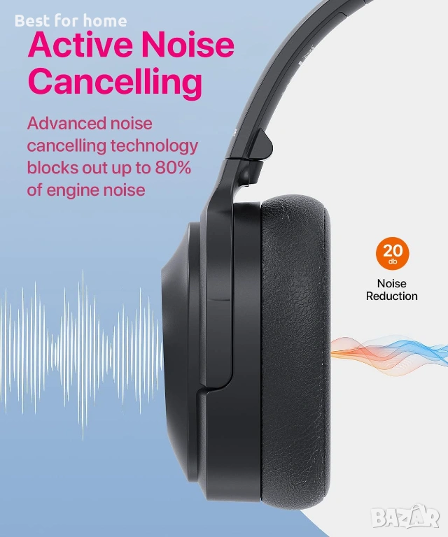 Усъвършенствана ANC технология: Bluetooth слушалките с шумопотискане използват най-новата технология за намаляване на шума, която е комбинация от активно и пасивно намаляване на шума. С едно докосване, за да включите функцията ANC, когато индикаторът свети, шумопотискането на Bluetooth слушалките може да открие и отмени по-широк диапазон от нискочестотен шум, осигурявайки ви отлично звуково представяне - ясен висок и нисък бас.