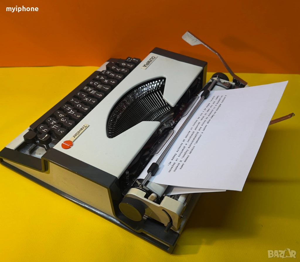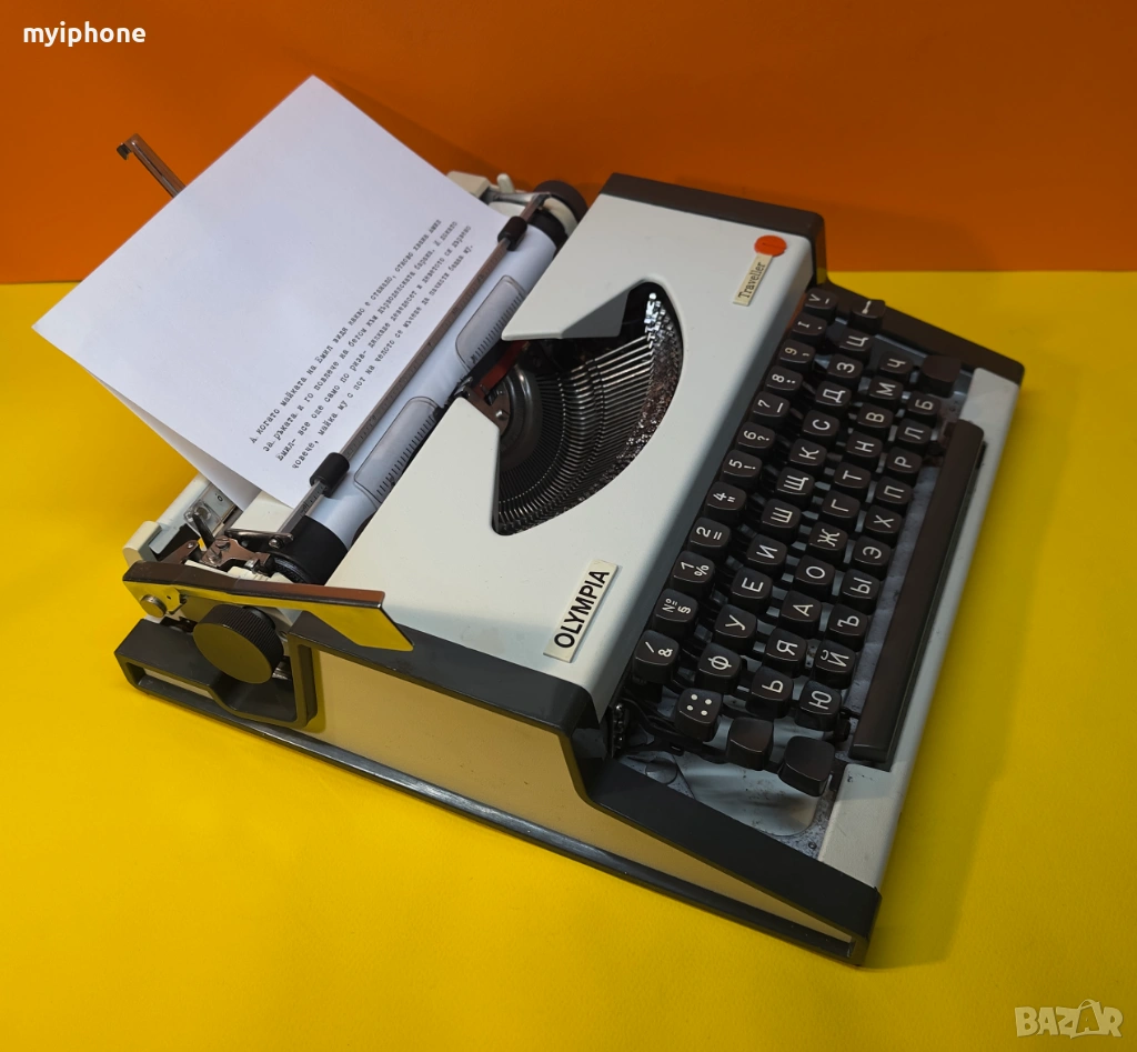 Пишеща Машина Olympia Traveller с нова лента , клавиатура Кирилица , обслужена и смазана всичко функционира нормално, подарък резервна лента .Работим с Еконт 10 % Отстъпка от цената на доставката ! Изпращане същия ден като на другия ден е при вас с опция преглед и тест ако е възможен такъв, допълнително договаряне за друг ден за доставка. Нужни дани за поръчка 1. Име и Фамилия 2.Телефонен номер 3.Град и Офис на Еконт до който искате да се достави или точен адрес за доставка до дома ви/ за София възможно взимане от място след уговорка или доставяне до адрес в рамките на София Цена 15 € .