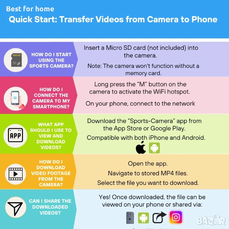 ЛЕСНО ПРЕХВЪРЛЯНЕ ЧРЕЗ WIFI С КОНТРОЛ ЧРЕЗ ПРИЛОЖЕНИЕ: Синхронизирайте записите бързо с помощта на приложението „Sports-Camera“. Тази велосипедна камера се свързва чрез WiFi за незабавен трансфер на видео, предлагайки простотата на компактна мини спортна камера, съчетана с надеждния работен процес на ежедневна екшън камера за колоездачи.