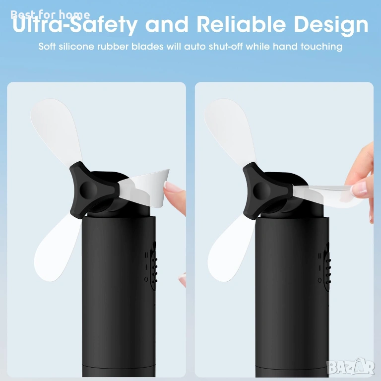 【Качество на материала, приятно усещане】Този тип преносим ръчен вентилатор е проектиран с гладък външен вид тип червило, вградените 3 остриета са изработени от силиконова гума, меки и стабилни. Ултра-безопасността е, че остриетата ще се изключат автоматично, ако ръцете ви ги докоснат случайно. Трябва да ги включите отново. Бъдете сигурни, че тези меки остриета няма да ви наранят.