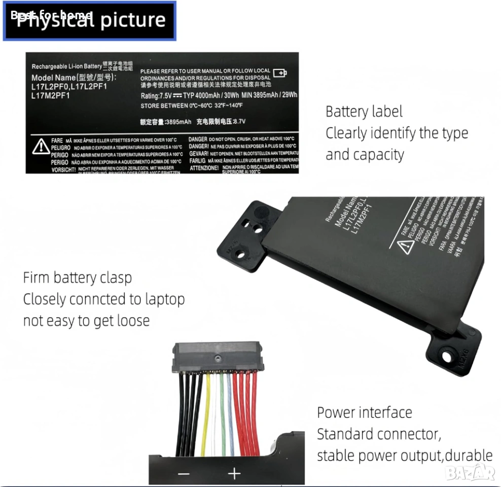 МОДЕЛ: L17L2PF1 Тип батерия: Литиево-йонна; Капацитет: 30Wh 4000mAh; Напрежение: 7.5V