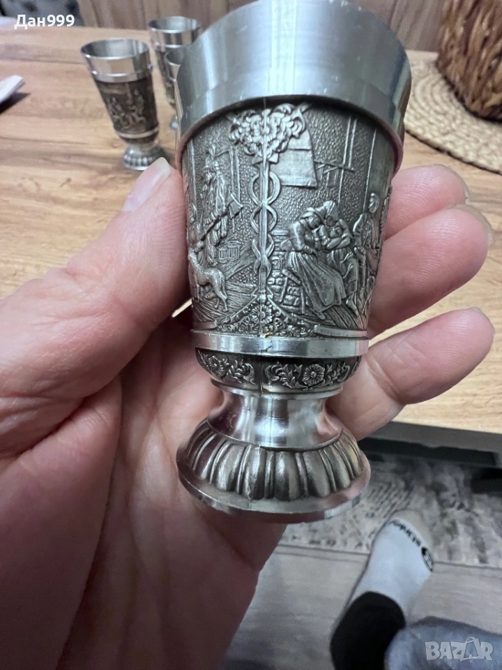 Винтидж комплект от шест уникално красиви калаени чашки → Обява 53204736